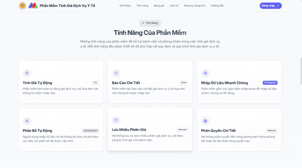 Phần mềm được xây dựng theo định hướng là công cụ hỗ trợ quản trị dữ liệu giá dịch vụ y tế trên môi trường số, giúp các đơn vị chuẩn hóa dữ liệu đầu vào, tập hợp và kiểm soát các yếu tố chi phí cấu thành giá, quản lý hồ sơ tính giá theo từng kỳ, nâng cao hiệu quả tổng hợp, phân tích, kiểm tra, đối chiếu số liệu; đồng thời phục vụ công tác lưu trữ, tra cứu, kế thừa dữ liệu và tham mưu quản lý trong lĩnh vực giá dịch vụ y tế.