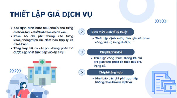 • Hỗ trợ xây dựng, rà soát, điều chỉnh, hoàn thiện và quản lý phiên bản phương án giá dịch vụ y tế theo từng lần cập nhật;