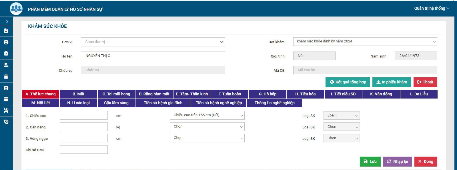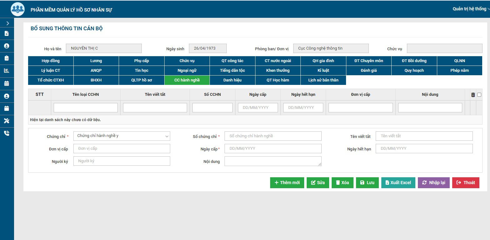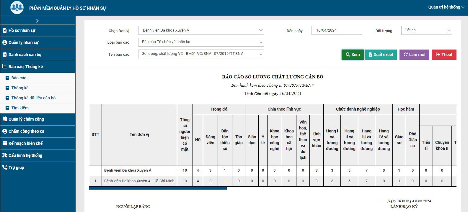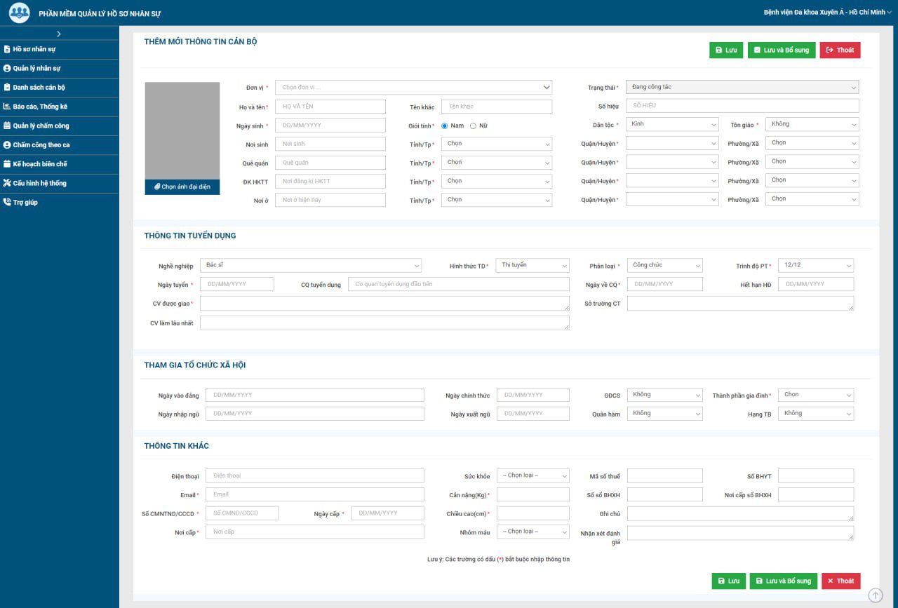 Phần mềm đáp ứng nghiệp vụ về công tác quản lý cán bộ cho các đơn vị trong và ngoài ngành y tế.