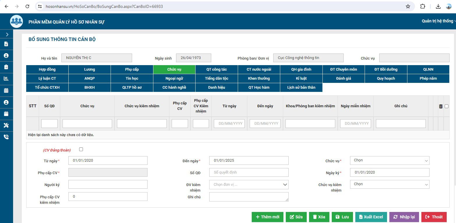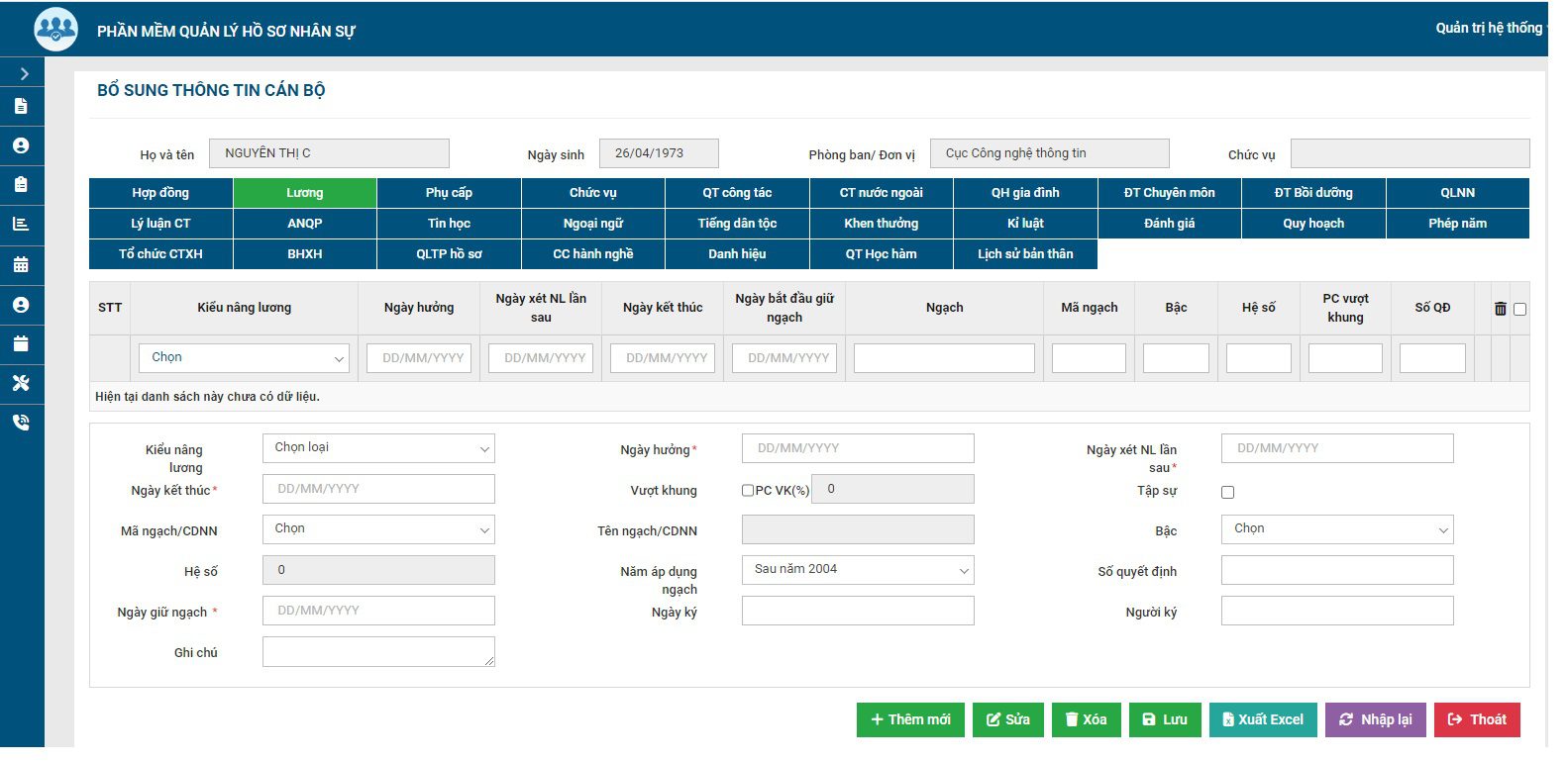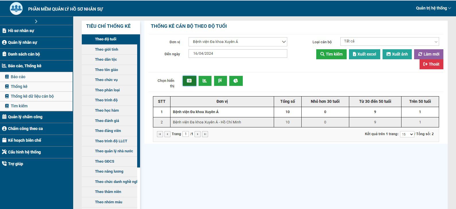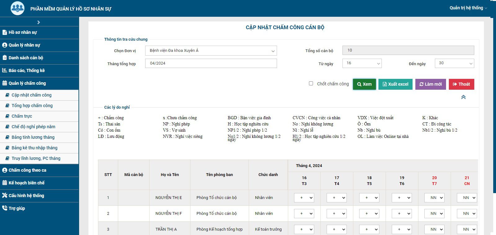Phần mềm đáp ứng nghiệp vụ về công tác quản lý cán bộ cho các đơn vị trong và ngoài ngành y tế.